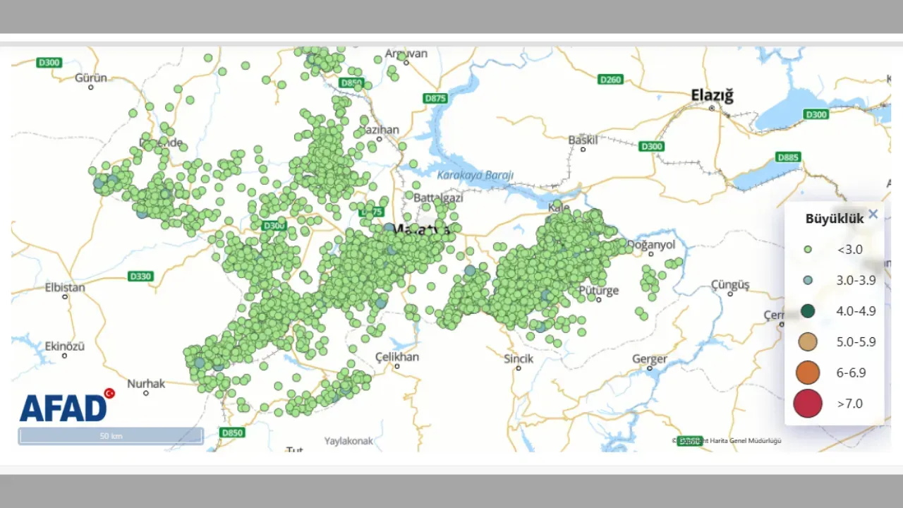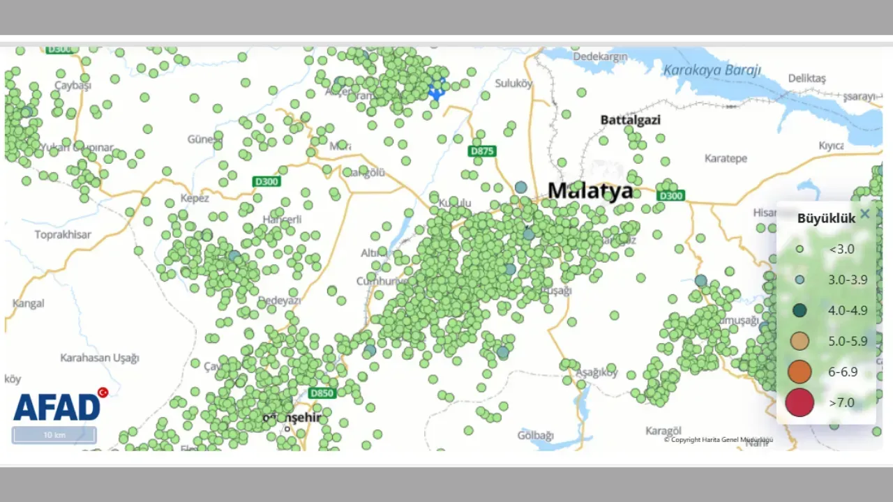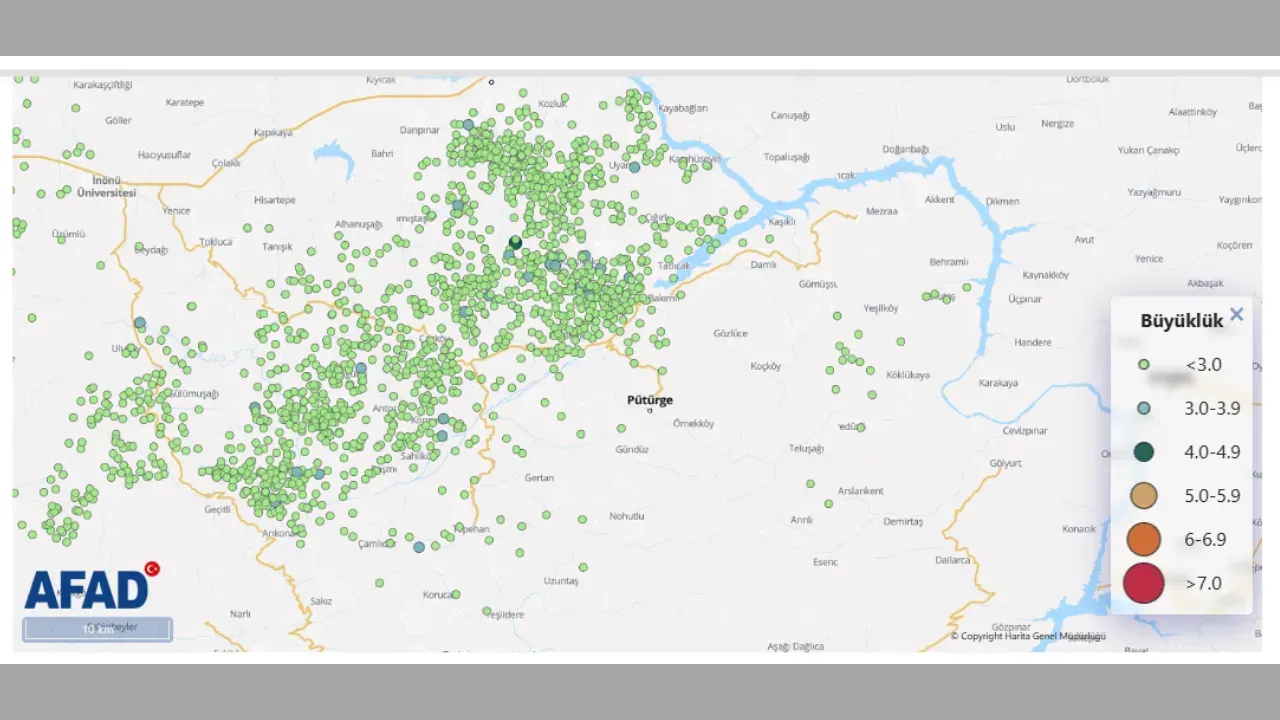 Türkiye’de deprem istatistikleri, Afet ve Acil Durum Yönetimi (AFAD) tarafından güncel olarak yayımlandı ve 2025 yılı verilerine göre önemli bir tablo ortaya çıktı. Yayımlanan verilere göre Malatya’da 2025 yılı içerinde Malatya’da en fazla deprem 804 sarsıntıyla Pütürge ilk sırada yer aldı. Pütürge’nin ardından ise en fazla deprem meydana gelen ilçe ise 730 sarsıntıyla Yeşilyurt ilçesi oldu. Üçüncü sırada ise 526 depremle Doğanşehir, dördüncü sırada ise 410 depremle Akçadağ yer aldı.