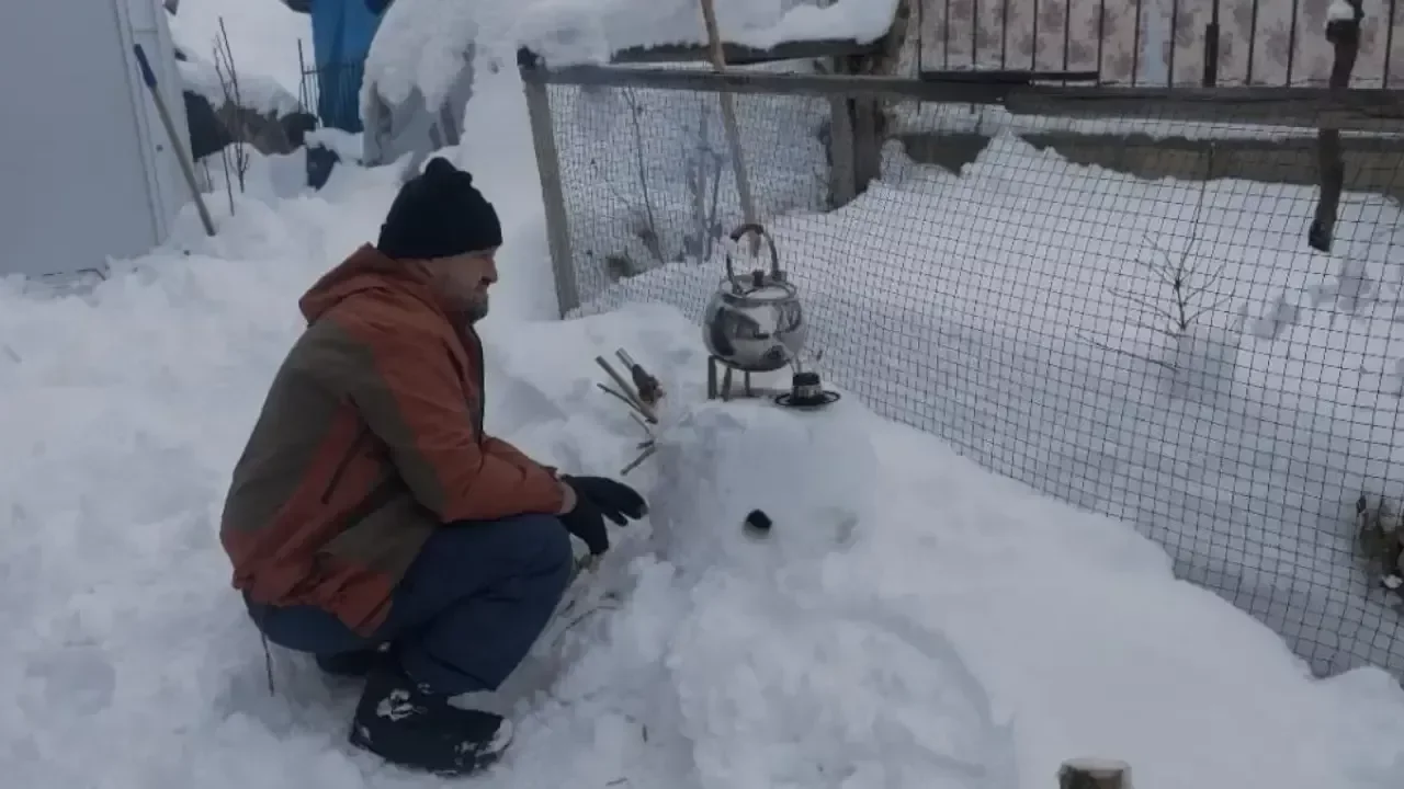 Renkli görüntülere sahne olan anlar, çevredeki vatandaşların da ilgisini çekti. Kardan soba görenleri hem şaşırttı hem de gülümsetti.