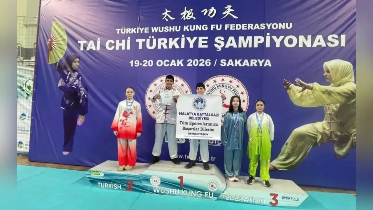 Battalgazi Belediyesi’nin gençlere yönelik spor yatırımları meyvesini vermeye devam ediyor. Sakarya’da düzenlenen Türkiye Wushu Kung Fu Şampiyonası’nda mücadele eden Battalgazi Belediyesi sporcuları, elde ettikleri derecelerle ilçeye gurur yaşattı. Türkiye Wushu Kung Fu Federasyonu tarafından 19-20 Ocak 2026 tarihlerinde Sakarya’da gerçekleştirilen ve savunma sanatları ile performans sporları kapsamında yer alan Tai Chi branşındaki Türkiye Şampiyonası’na katılan Battalgazi Belediyesi sporcuları, farklı yaş ve kategorilerde önemli başarılara imza attı.