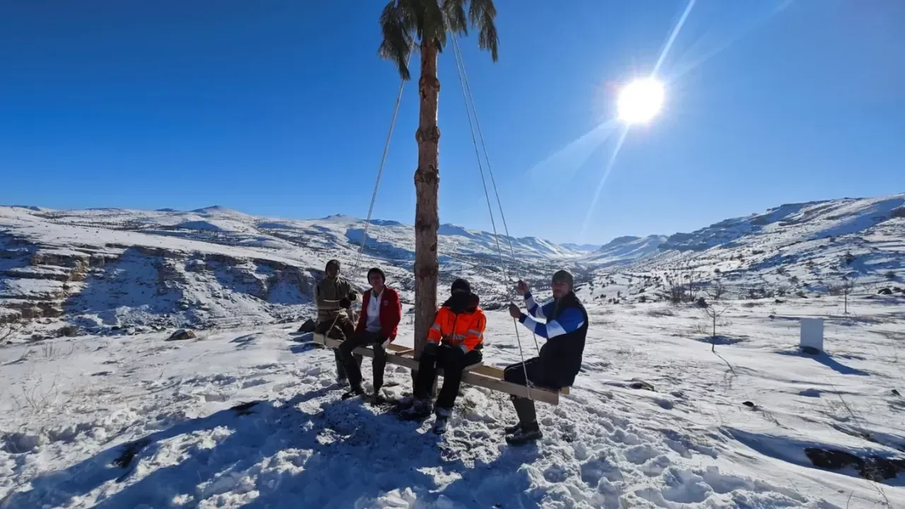 Malatya'nın Akçadağ ilçesinde etkili olan kar yağışının ardından bir araya gelen bir grup arkadaş dondurucu soğuk havaya aldırış etmeden kışın tadını çıkardı. Akçadağ ilçesine bağlı Kozluca Mahallesi'nde yaşanan olayda, arkadaş grubu oluşturdukları ağaca yerleştirdikleri merdivenle ağacın etrafında dönerek karın keyfini çıkardı. Macera tutkunlarının eğlenceli anları renkli görüntüler oluşturdu.