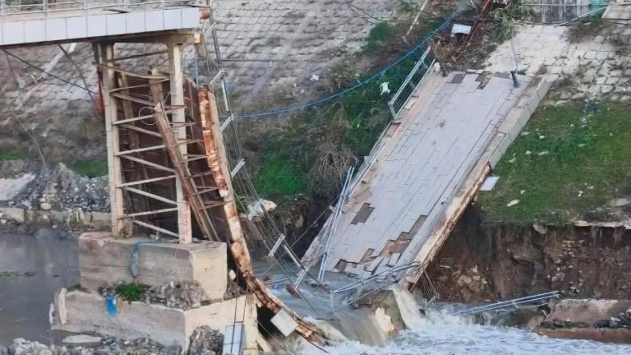 Hatay’da yayaların kullandığı beton köprünün bir kısmında çökme yaşandı, çökme esnasında köprüde kimsenin olmaması faciayı önledi.