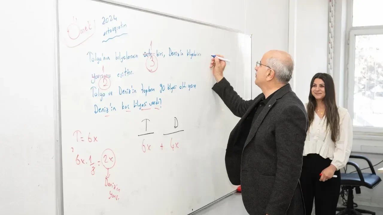 Matematik dersine kursiyerlerle birlikte katılan Başkan Er, ayrıca kursiyerlerle birlikte tahtada denklem sorusunu da çözdü.
