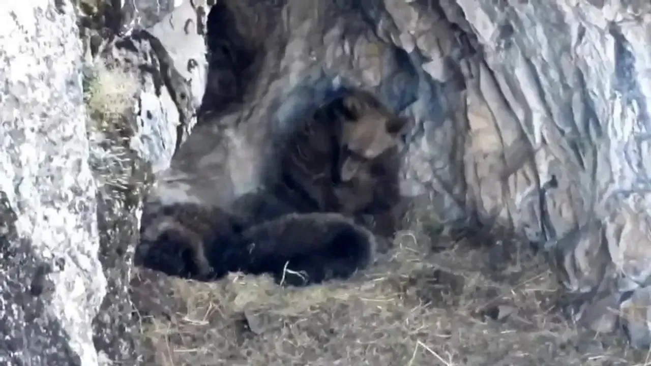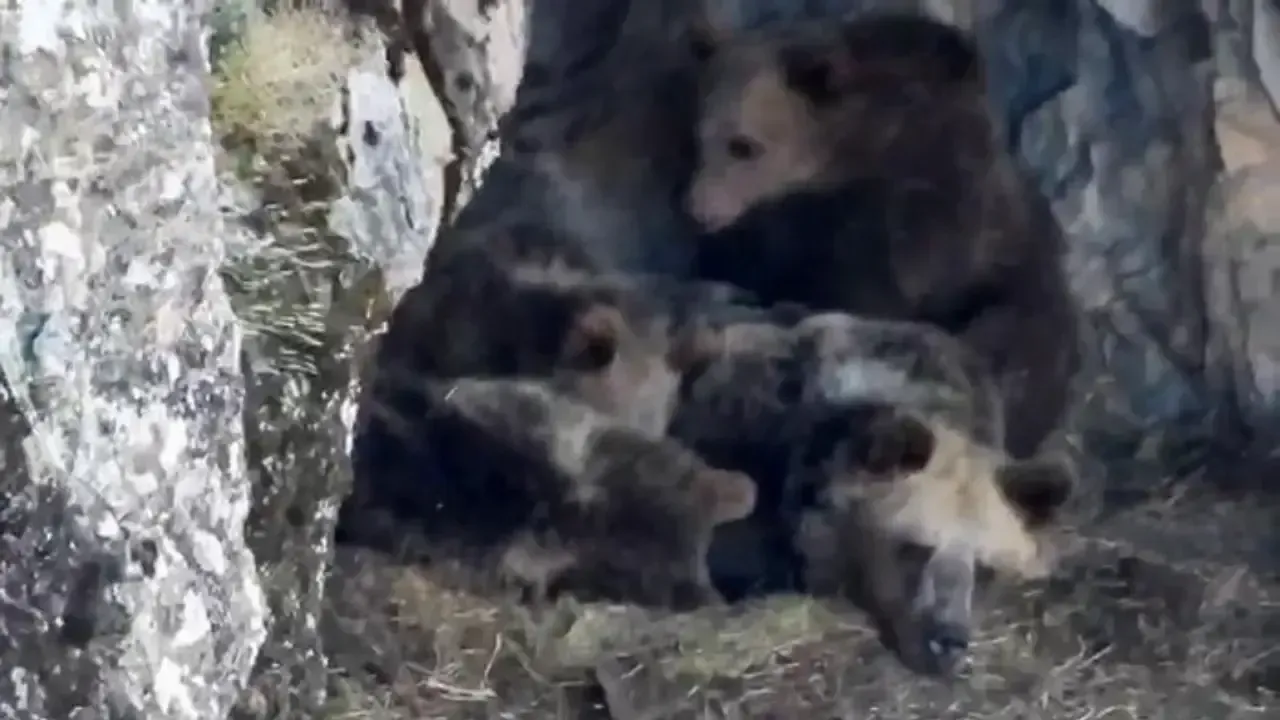 Erzurum’un İspir ilçesi Yedigöller Mahallesi’nde yaşayan profesyonel dağcı Bülent Erkan, Tüneller bölgesindeki mağarada kış uykusuna yatmayan ayı ailesini cep telefonu ile görüntüledi.