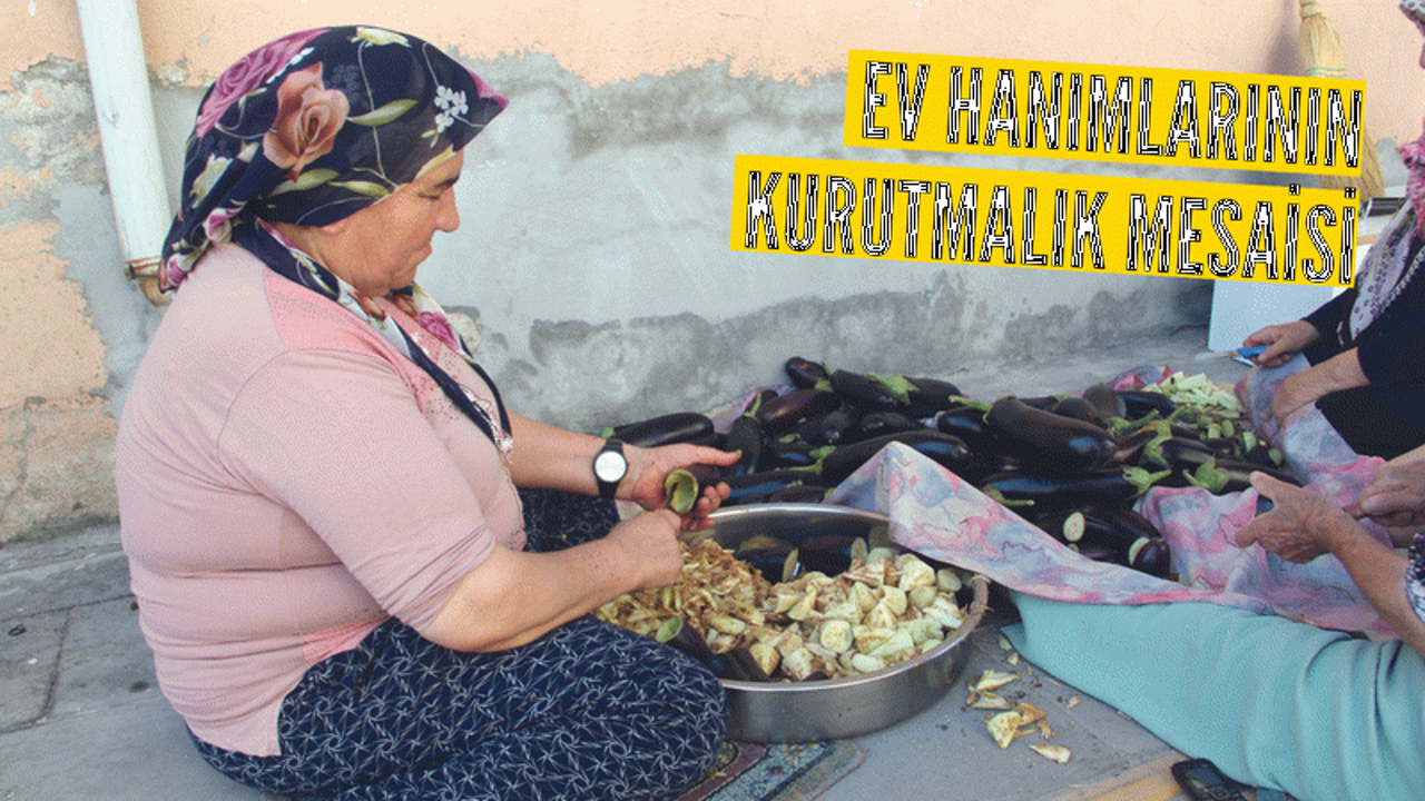 İnönü Mahallesi, Salkımsöğüt Sokak’ta ev hanımları bir arayarak gelerek kurutmalık biber ve patlıcan yaparak yaz aylarında kışa hazırlık yapıyorlar. Ev hanımlarından Elif Yıldız, kurutmalık yapmanın püf noktaları hakkında bilgi vererek, “Kurutmalık biber, patlıcan, salatalık ve kabaktan yapılıyor. Biberi kurutmak için tohumlarının olduğu kısmı keser ve ipe asarız, patlıcanı ikiye böler ve içini oyarız. Kabak ve salatalık kurutması içinde önce kabuklarını soyarız ardından içini oyup ipe asarak güneşte kurumaya bırakırız” şeklinde konuştu.