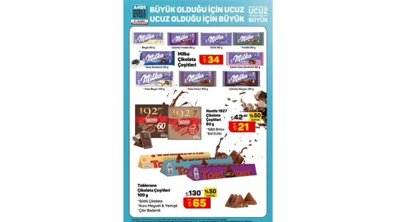 Milka çikolata çeşitleri 34 TL