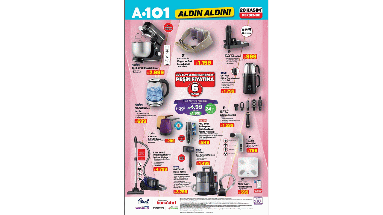 Her hafta olduğu gibi bu hafta da uygun fiyatlı ürünleriyle dikkat çeken A101, 20 Kasım 2025 tarihinden itibaren geçerli olacak indirimleri duyurdu. İşte onlardan bazıları: