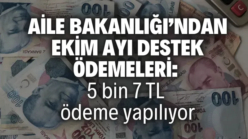 Aile Bakanlığı’ndan ekim ayı destek ödemeleri: 5 bin 7 TL ödeme yapılıyor