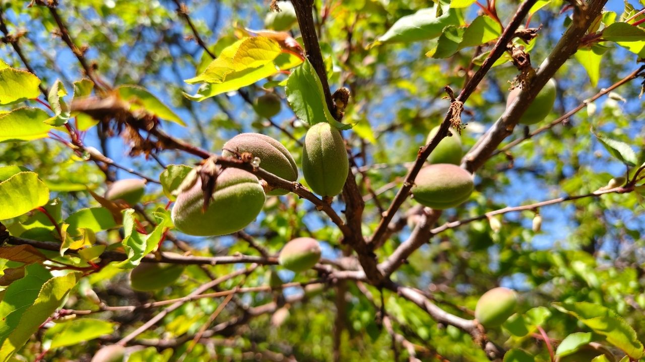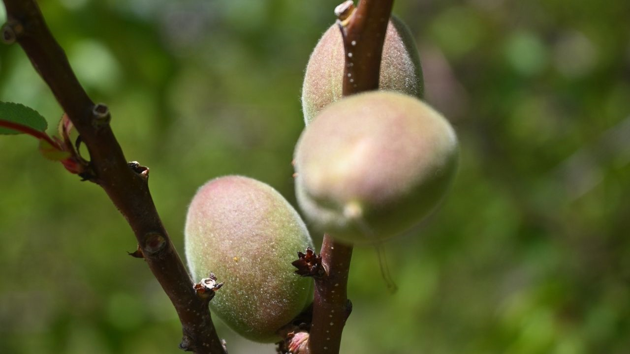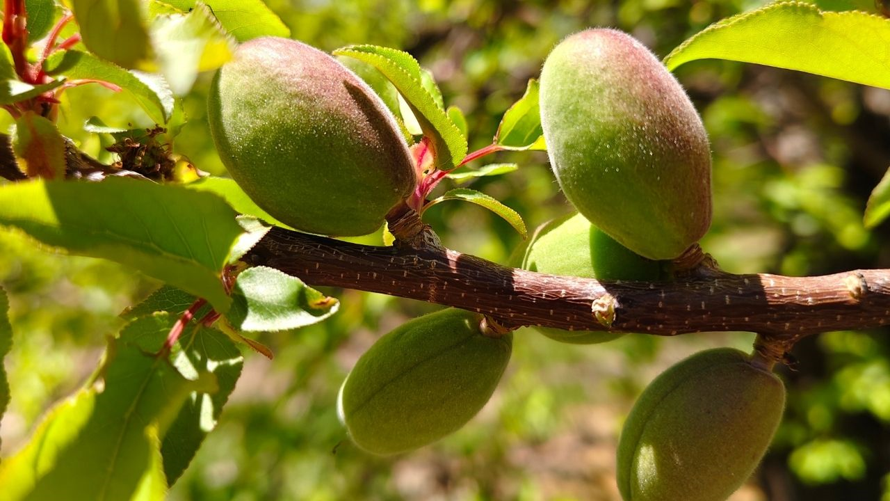 Güneşin yumuşak ışığıyla parlayan çağlalar, yemyeşil yaprakların arasında adeta gizlenmiş küçük hazineler gibi dikkat çekiyor.