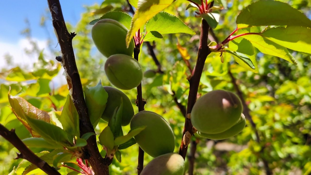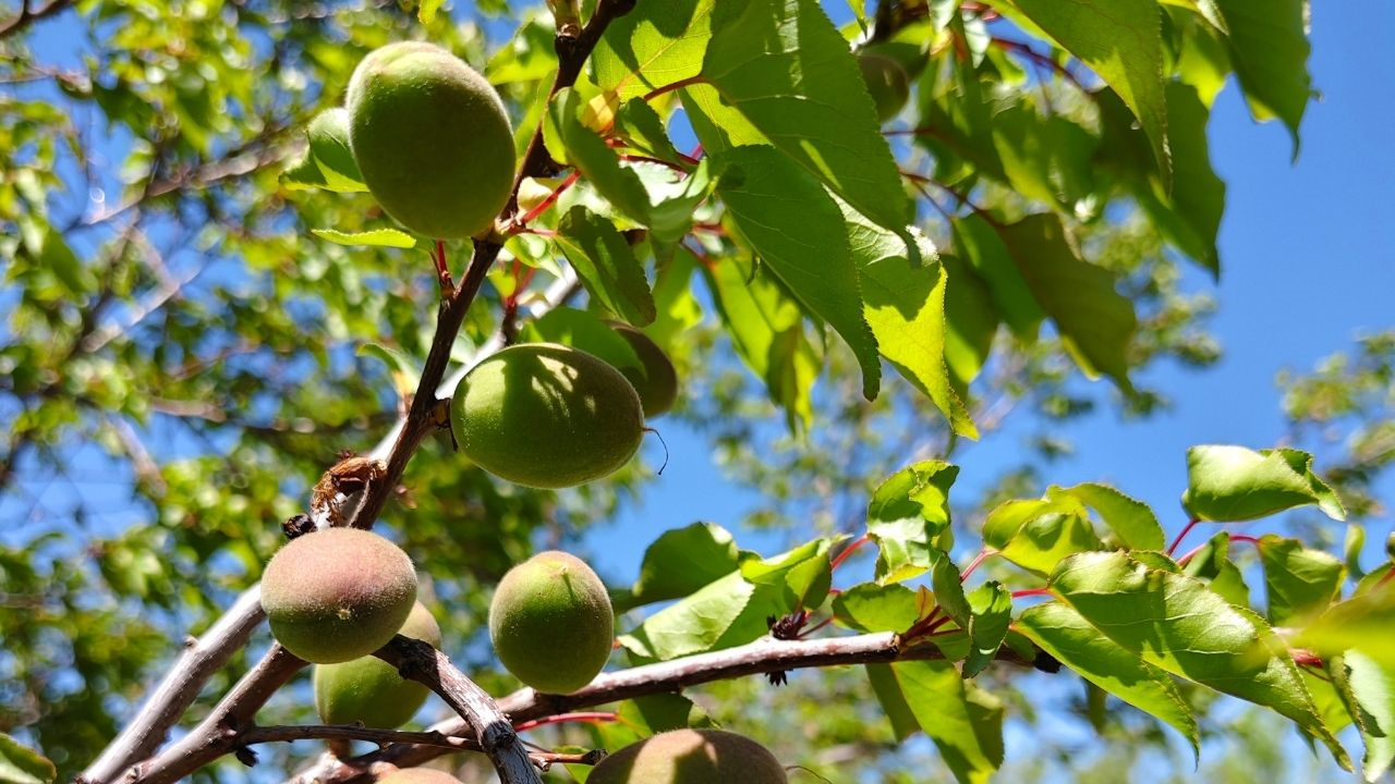 Çağla dönemine ulaşan kayısılar hem üreticinin umudunu yeşertti hem de doğanın sunduğu eşsiz güzelliği gözler önüne serdi.