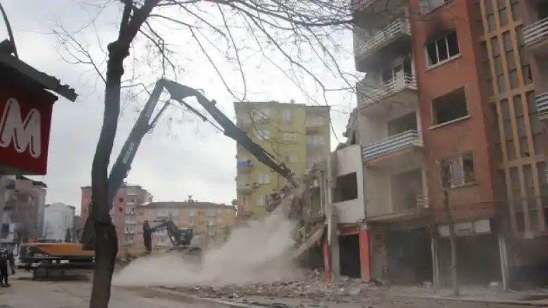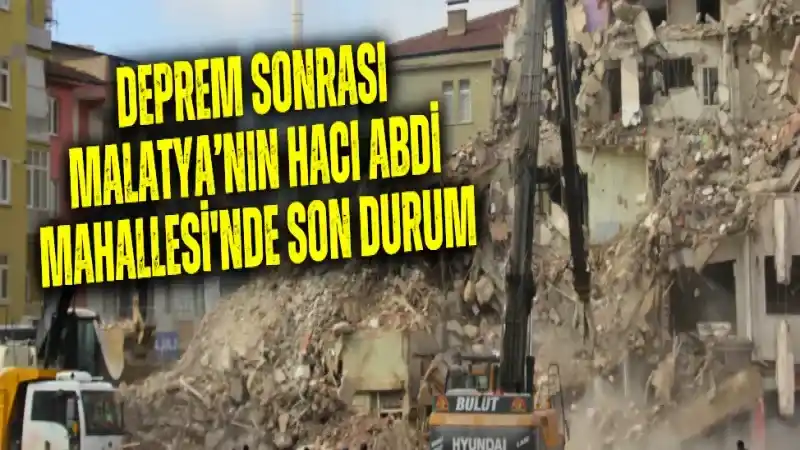 Malatya'da 6 Şubat depremlerinden sonra ağır hasar alan Hacı Abdi Mahallesi'nde yıkımlar hala devam ediyor. Özellikle Zapçıoğlu Caddesi'nde ağır hasar alan binaların yıkımı sürüyor. Malatya genelinde görülen açık alt yapı sorunları ve ağır hasarlı binaların yıkımında su kullanılmaması gibi sorunlarla başa çıkılmaya çalışılıyor.