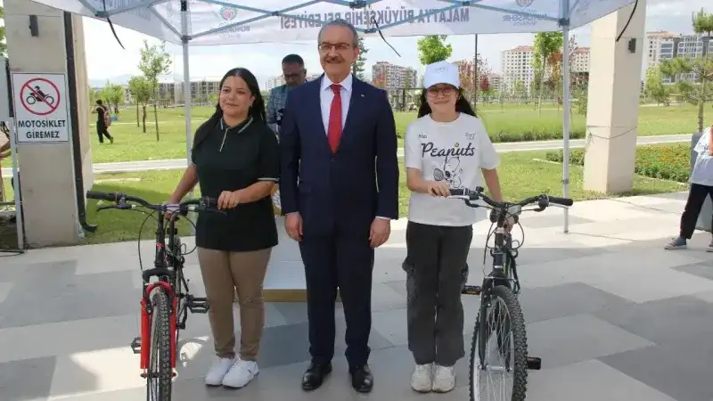 İlkokul ve ortakul kategorilerinde birinci olan öğrencilere Seddar Yavuz tarafından bisiklet hediye edildi.