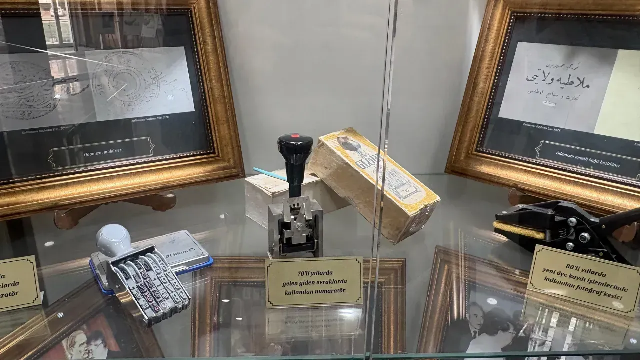 Malatya Ticaret ve Sanayi Odası’nın giriş katında sergilenen tarihi eşyalar büyük ilgi görüyor. 1950’lerden 2000’lere kadar kullanılan telefon, daktilo, kamera ve hesap makineleri kurum tarihine ışık tutuyor.