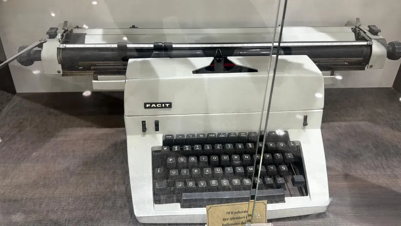 Sergide özellikle 1970 ve 1980’li yıllarda kullanılan ofis ekipmanları dikkat çekiyor. Bu döneme ait daktilolar, numaratörler ve fotoğraf kesiciler, büro çalışmalarının nasıl yürütüldüğünü gösteriyor.