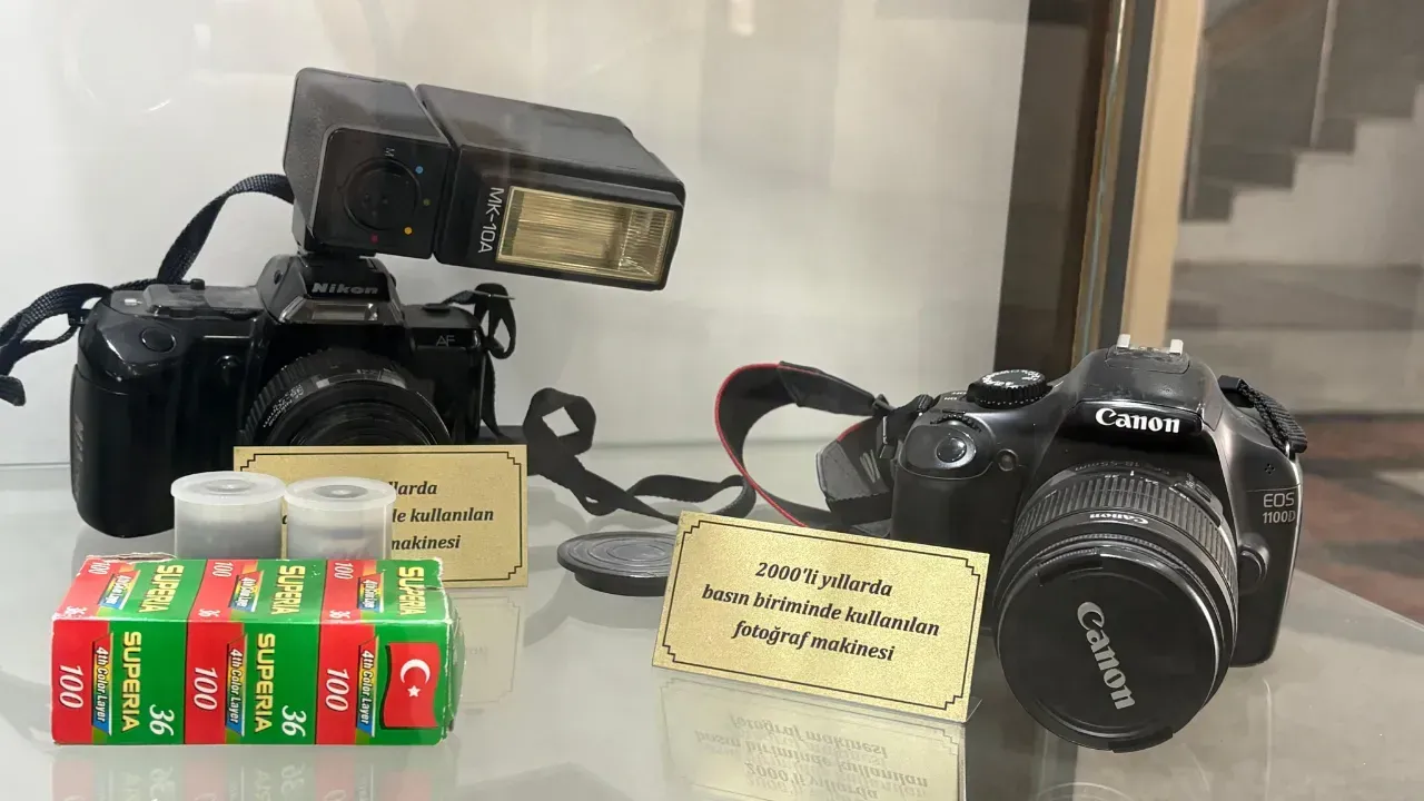 Kurumun basın faaliyetlerinde kullanılan ekipmanlar da sergide yer alıyor. 1990’lı ve 2000’li yıllarda kullanılan kameralar ve fotoğraf makineleri, o dönemde yapılan kurumsal iletişim çalışmalarını hatırlatıyor.