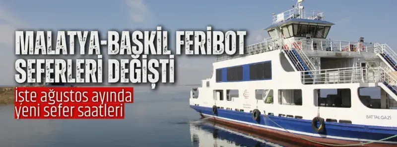 Battalgazi-Baskil arasında hizmet vermekte olan feribot sefer ve saatlerinde yapılan değişiklik sonrasında, Karakaya Baraj Gölü’nde ilk sefer Malatya tarafından 06.00, Baskil tarafından 06.45, son seferler ise Malatya tarafından 18.30, Baskil tarafından 19.15’te yapılacak ve toplamda 13 sefer düzenlenecek.
