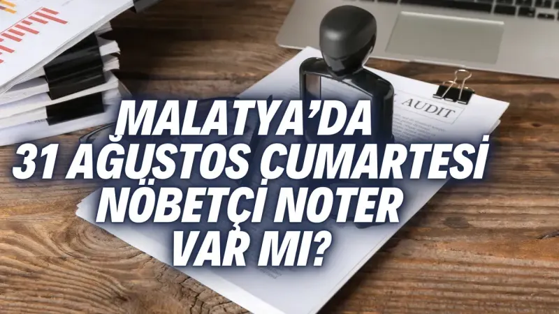 Malatya 2. Noterliği, 31 Ağustos Cumartesi günü boyunca açık olacak ve vatandaşların noterlik işlemlerini gerçekleştirebilmeleri için hizmet verecek. Noterlik, özellikle hafta sonu saatlerinde de açık kalarak, yoğunluk ve acil işlemler gibi durumlarda vatandaşlara yardımcı olmayı amaçlanıyor.