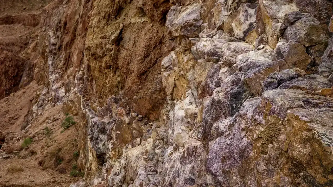 Cevherli zon; 5–30 m kalınlığında, silisli, breşik ve limonitik yapıda. Breşler çoğunlukla şist ve kristalize kireçtaşı parçalardan oluşuyor. Matriks: Mikrokristalin kuvars, limonit, florit (az miktarda kalsit, barit, sülfürlü mineraller eşlik eder). Kuvars içeriği yüzde 50’den fazla, bu da zonu silisleşmiş görünüme sokuyor. Florit dağılımı heterojen, genellikle mor renkli olup yer yer beyaz florit de bulunuyor. Florit tenörü yüzde 30–65 arasında değişiyor.