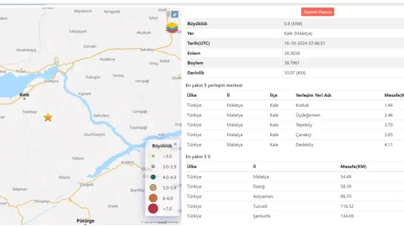 10:46:30 – Akuşağı-Kale (Malatya) – M: 6.0, Derinlik: 6.5 km