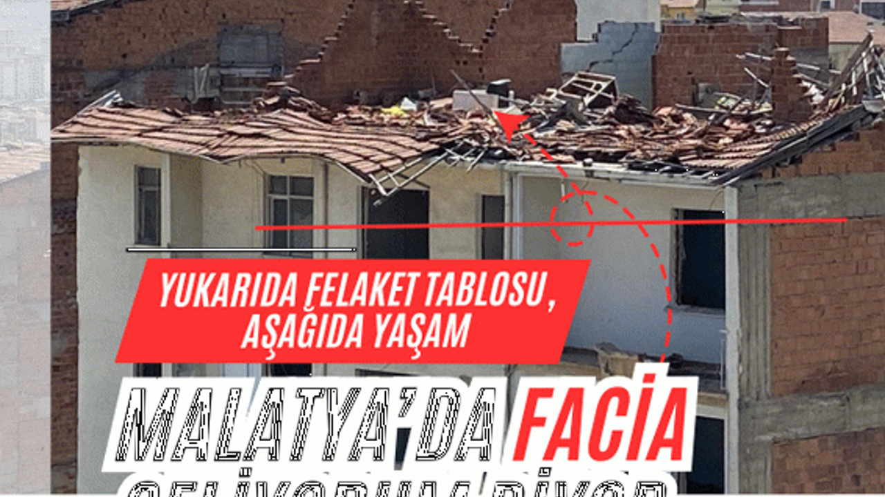 Malatya’da şehrin yaya ve araç trafiği açısından en işlek noktalarından biri olan İnönü Caddesi’nde ağır hasarlı bir binanın çatısı düştü düşecek durumda. Aynı binanın hemen altında ise esnafların işlerine devam ettiği, yayaların geçtiği, araç trafiğinin devam ettiği görülüyor.
