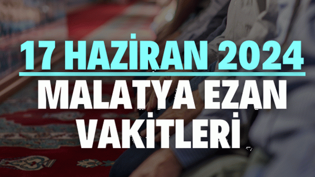 Müslümanların kılmakla yükümlü oldukları 5 vakit namaz bulunur. Bunlar sabah, öğle, ikindi, akşam ve yatsı namazlarıdır. Ezan vakitleri ise güneşin doğuş ve batış zamanına, mevsimlere ve coğrafi konuma göre değişiklik gösterir. İşte Malatya’da, 17 Haziran 2024 tarihindeki ezan saatleri: