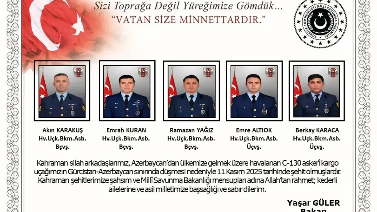 Milli Savunma Bakanlığı (MSB) askeri kargo uçağının Gürcistan-Azerbaycan sınırında düşmesi nedeniyle 20 askerin şehit olduğunu açıkladı.