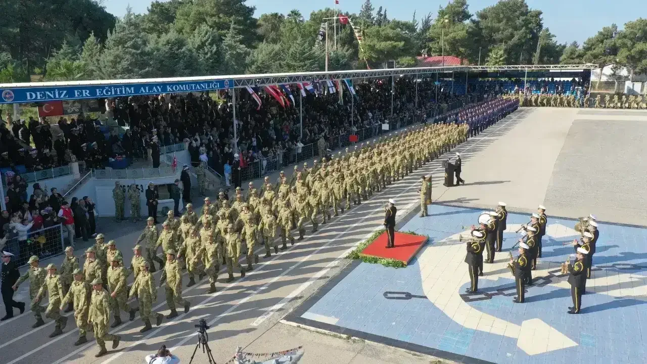 Törende konuşan Deniz Er Eğitim Alay Komutanı Deniz Piyade Kurmay Albay Hasan Ardıç, temel askerlik eğitimi boyunca kendilerine tevdi edilen her türlü görevi hırs, özgüven, cesaret ve fedakarlıkla yapan erleri yetiştirdikleri için ailelere teşekkür etti.
