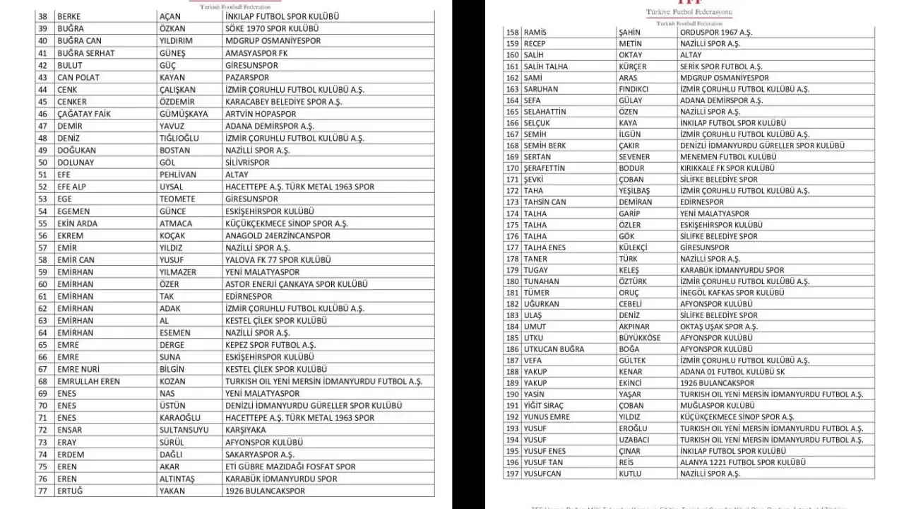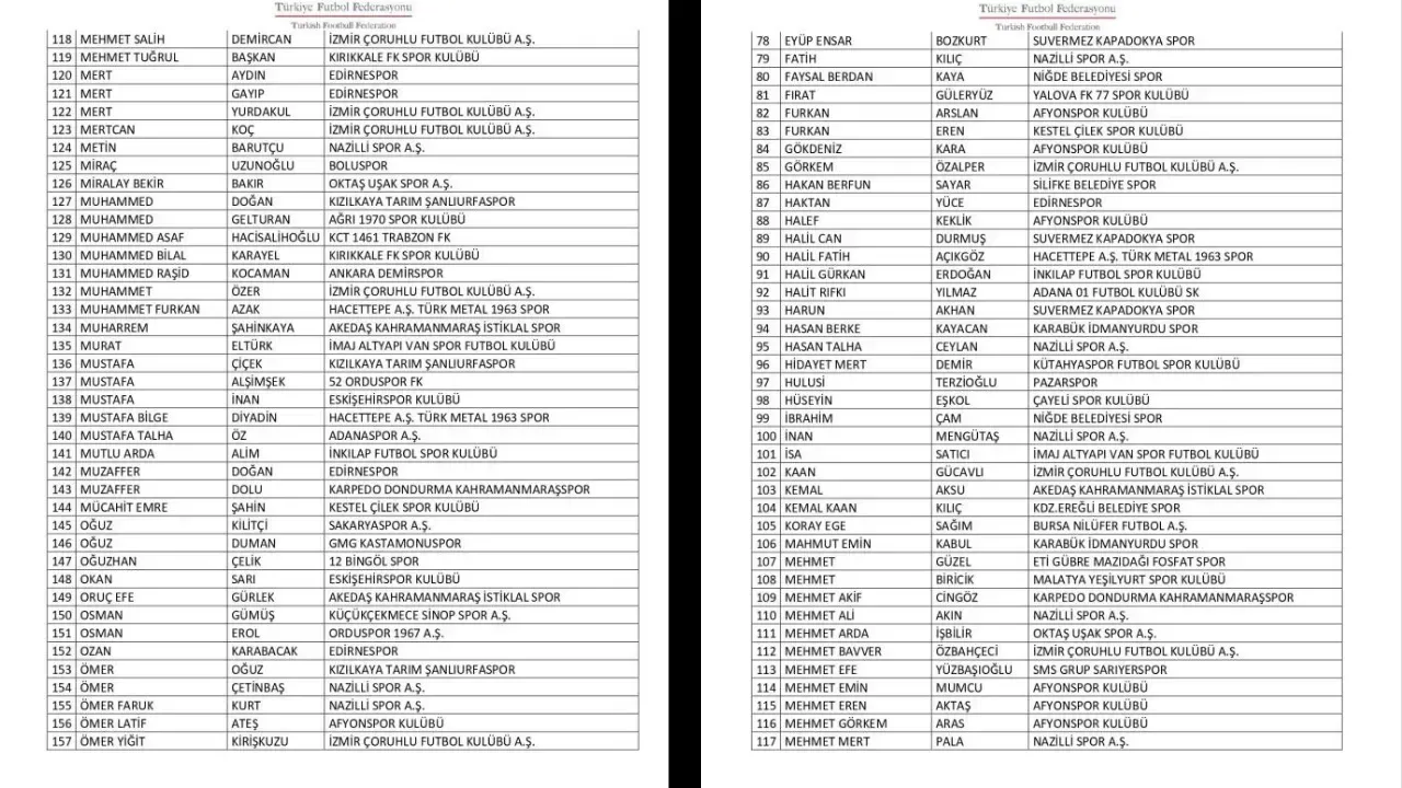 Türkiye Futbol Federasyonu’nca profesyonel liglere yönelik olarak yürütülen bahis soruşturması kapsamında 10 Kasım 2025 tarihinde PFDK’ya sevk edilen 1024 futbolcunun haricinde profesyonel liglerde yer alan kulüplerin “A Takım” listelerinde yer alan veya ilgili lig statüleri uyarınca esame listesine yazılarak profesyonel müsabakalarda oynatılabilen amatör statüdeki 658 futbolcudan bahis oynadığı tespit edilen aşağıdaki 197 futbolcunun Futbol Disiplin Talimatı’nın 57. maddesi uyarınca 8 Aralık 2025 tarihinden itibaren tedbirli olarak PFDK'ya sevk edilmesine karar verildi.
