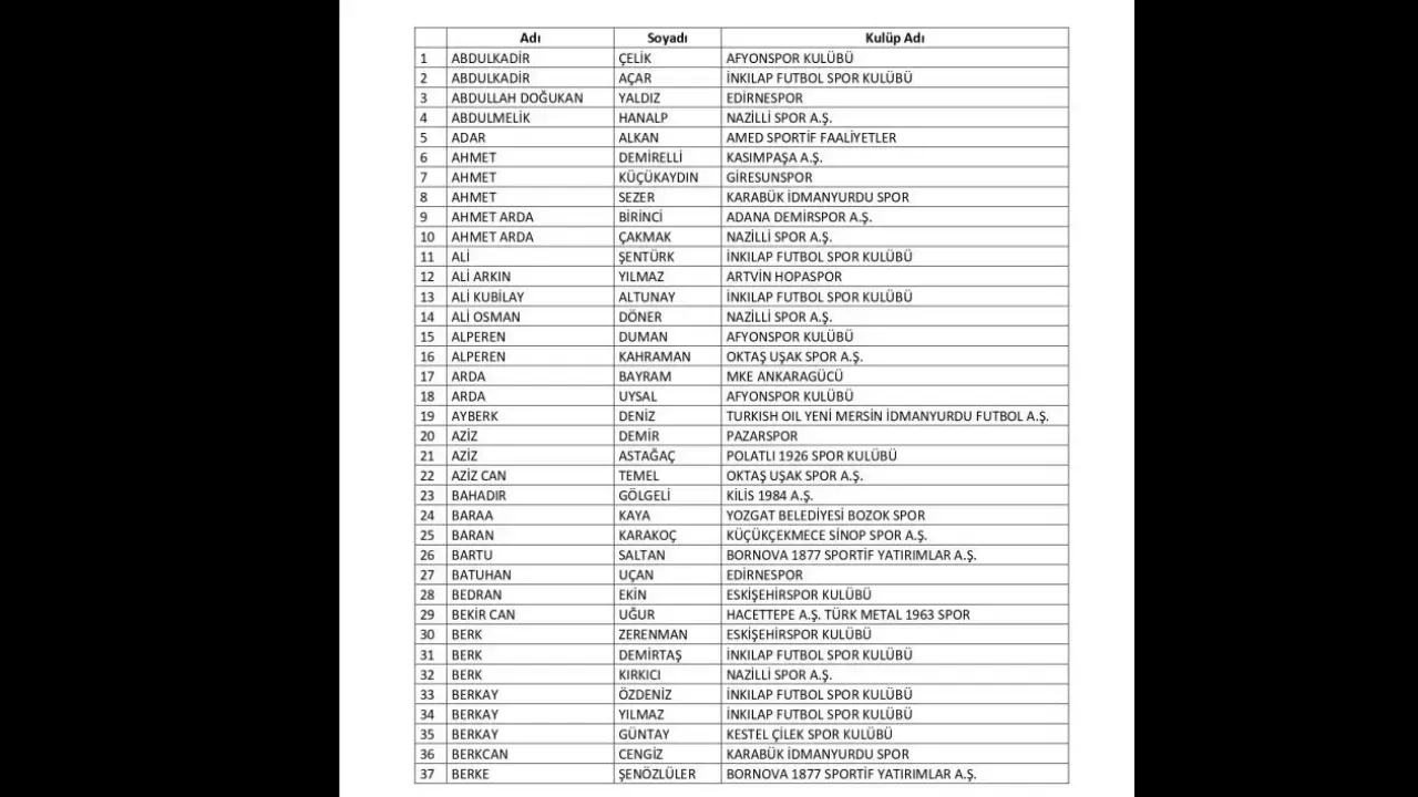 Bahsi edilen futbolcular arasında Malatya takımlarından oyuncular da var. İşte o isimler: