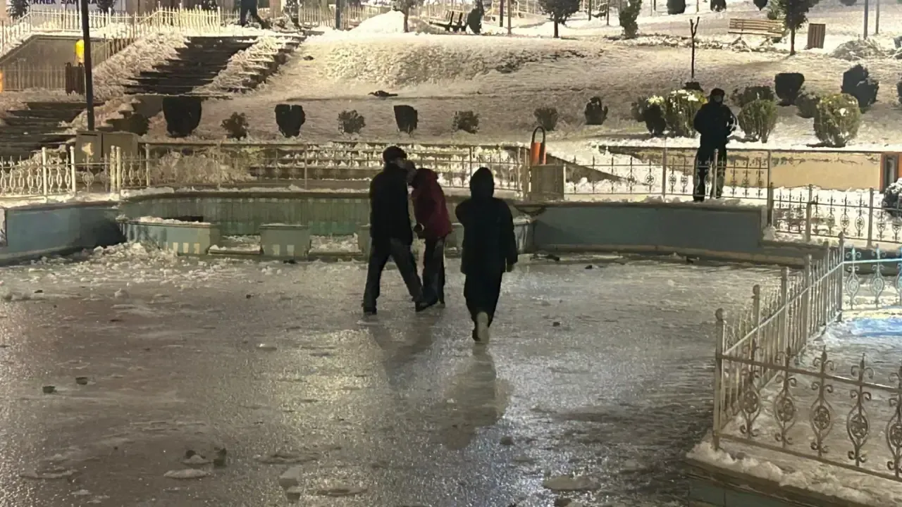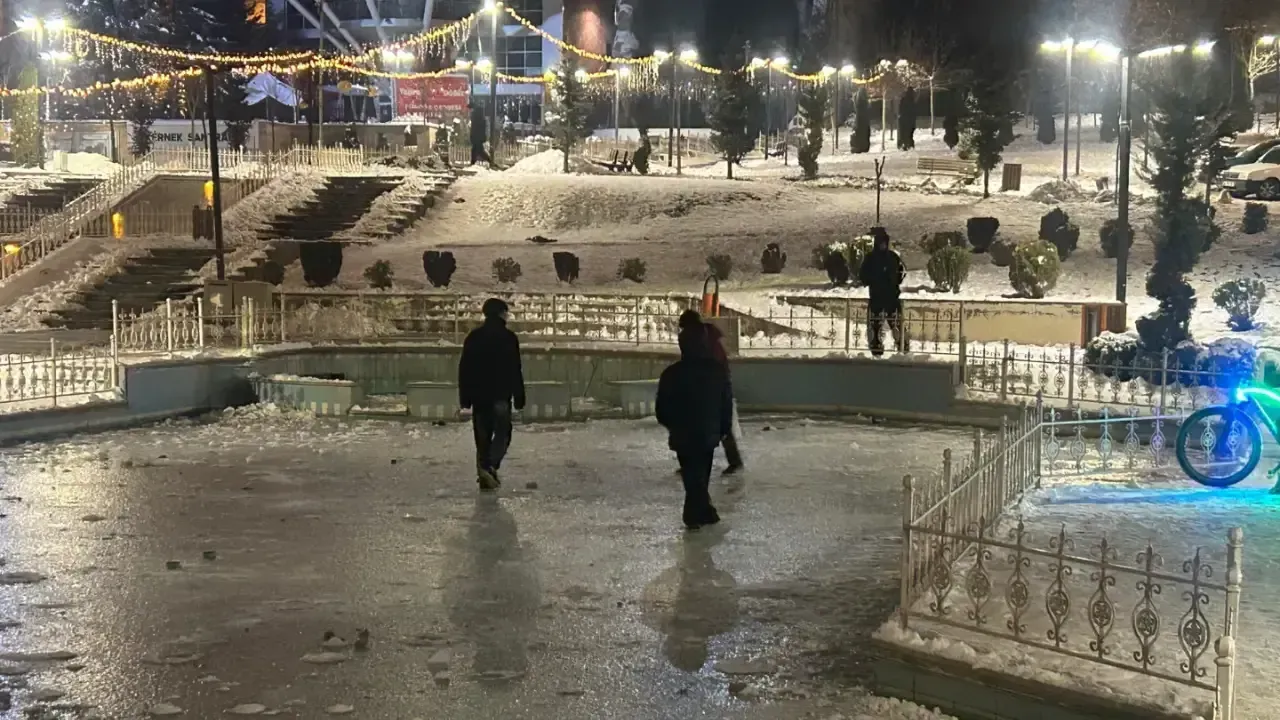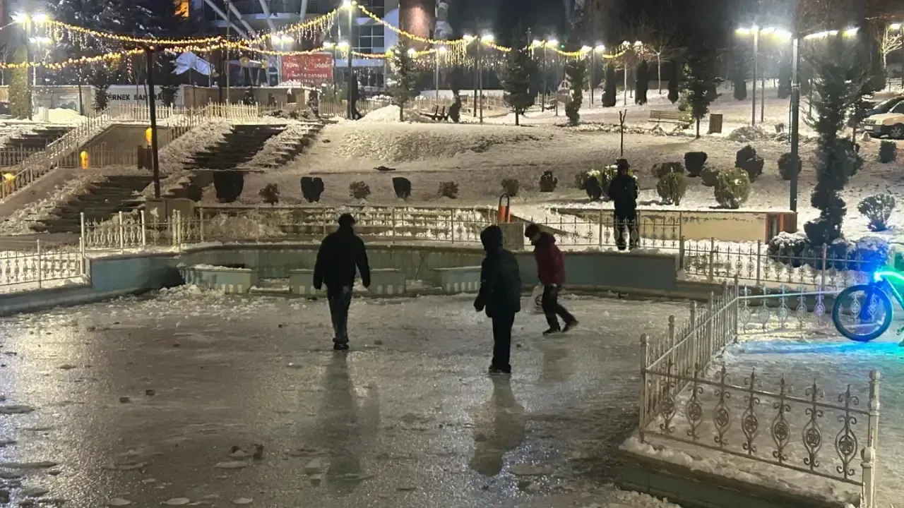 Malatya’da zaman zaman etkili olan kar yağışı ve soğuk hava nedeniyle parklardaki süs havuzları buz tuttu. Bu durum çocuklar için eğlence kaynağı olsa da çeşitli risk ve tehlikeleri beraberinde getirdi.