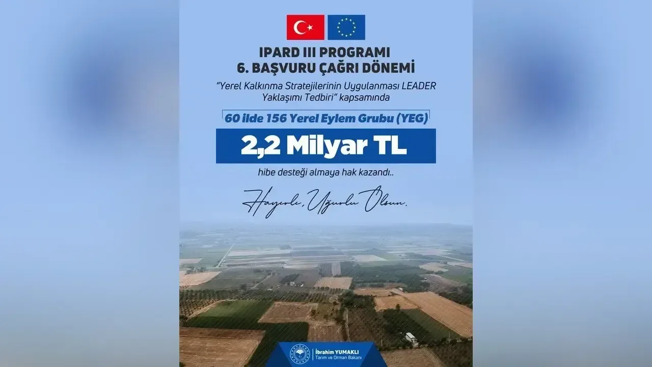 Tarım ve Orman Bakanı İbrahim Yumaklı, IPARD III Programı kapsamında yürütülen LEADER Yaklaşımı Tedbiri’ne ilişkin önemli bir açıklamada bulundu. Bakan Yumaklı, başvuruda bulunan tüm Yerel Eylem Gruplarının yüzde 100 hibeyle destekleneceğini duyurdu.