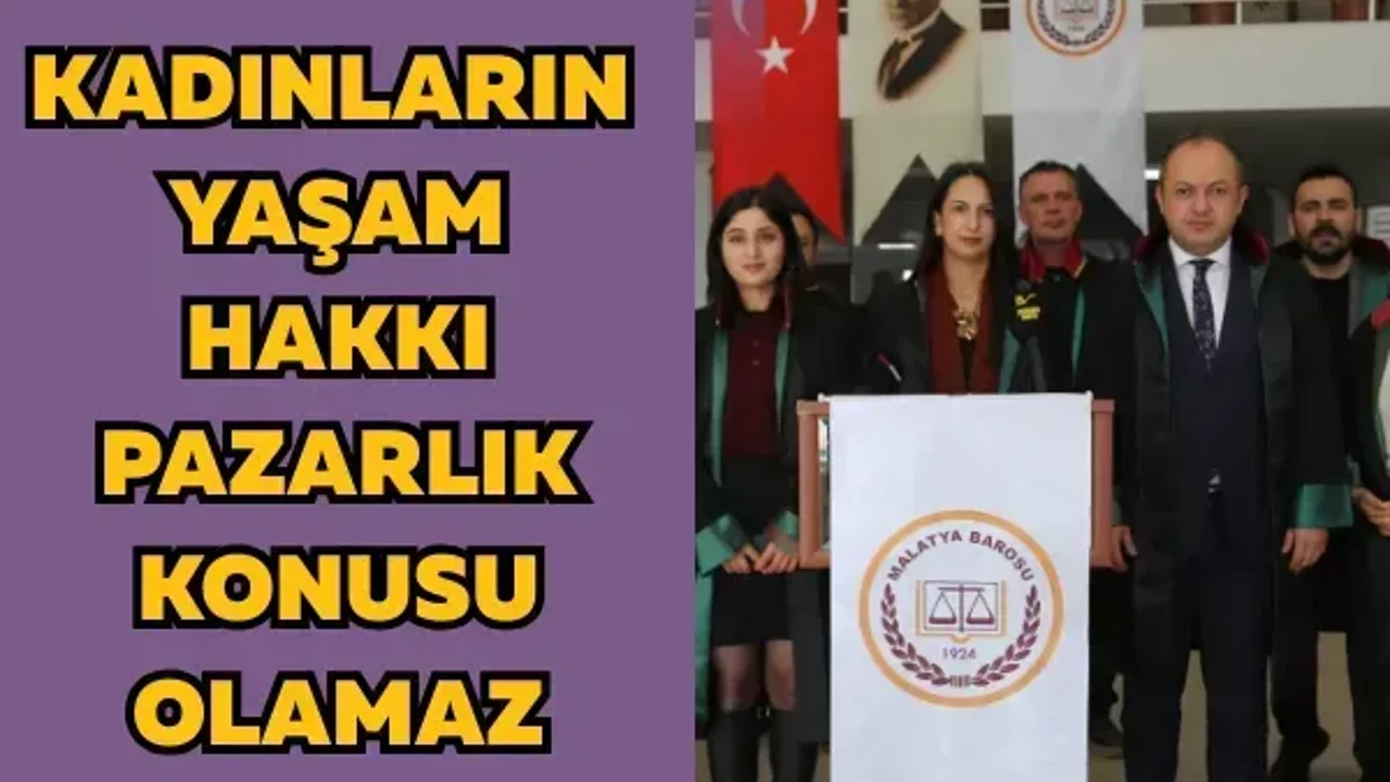 Malatya Barosu Kadın Hakları Komisyonu Başkanı Avukat Zeliha Genç Aydoğan, 8 Mart Dünya Emekçi Kadınlar Günü dolayısıyla yaptığı açıklamada, kadınların yaşam hakkının vazgeçilmez olduğunu vurguladı. Malatya Barosu Sosyal Tesisleri’nde gerçekleşen basın açıklamasına Baro Başkanı Onur Demez, baro üyeleri ve çok sayıda avukat katıldı.