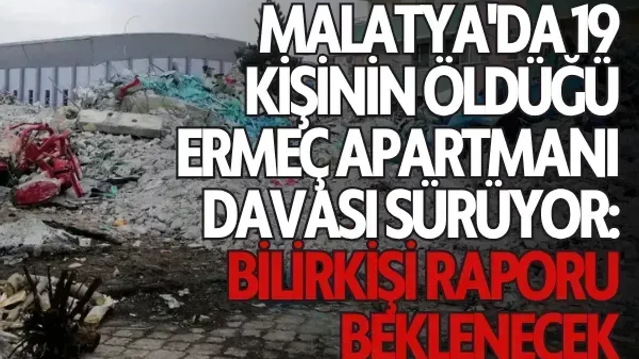 Malatya'da, 6 Şubat 2023'teki Kahramanmaraş'ın Pazarcık ilçesi merkezli 7,7 büyüklüğündeki depremde 19 kişinin hayatını kaybettiği Ermeç Apartmanı'nın yıkılmasına ilişkin 6 tutuksuz sanığın yargılanmasına devam edildi.