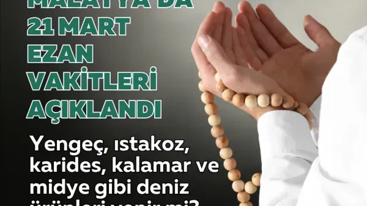 Malatya’da ibadetlerini yerine getirecek vatandaşlar için 21 Mart 2026 tarihine ait ezan vakitleri açıklandı. Gün boyunca namaz saatlerini takip etmek isteyen vatandaşlar için imsaktan yatsıya kadar tüm vakitler netleşti. Öte yandan, yengeç, karides ve midye gibi deniz ürünlerinin tüketiminin dini hükmü de gündemdeki yerini koruyor.