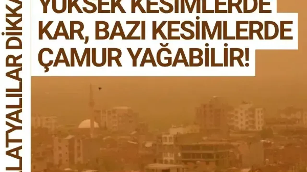 Doğanyol: Çok bulutlu, aralıklı orta ve kuvvetli yağmur ve sağanak yağışlı; yükseklerde karla karışık yağmur ve yer yer kar yağışlı. 8°C