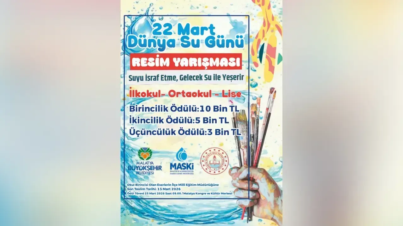 Malatya Büyükşehir Belediyesi Su ve Kanalizasyon İdaresi (MASKİ) Genel Müdürlüğü, suyun hayati önemine dikkat çekmek ve genç nesillerde tasarruf bilinci oluşturmak amacıyla ödüllü resim yarışması başlattı. Malatya genelindeki tüm resmi ve özel ilkokul, ortaokul ve lise öğrencilerini kapsayan yarışmanın teması “Suyu İsraf Etme, Gelecek Su ile Yeşerir” olarak belirlendi.