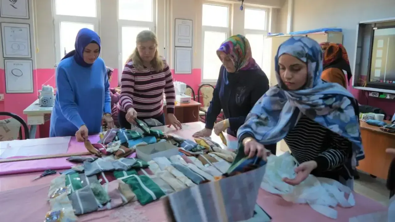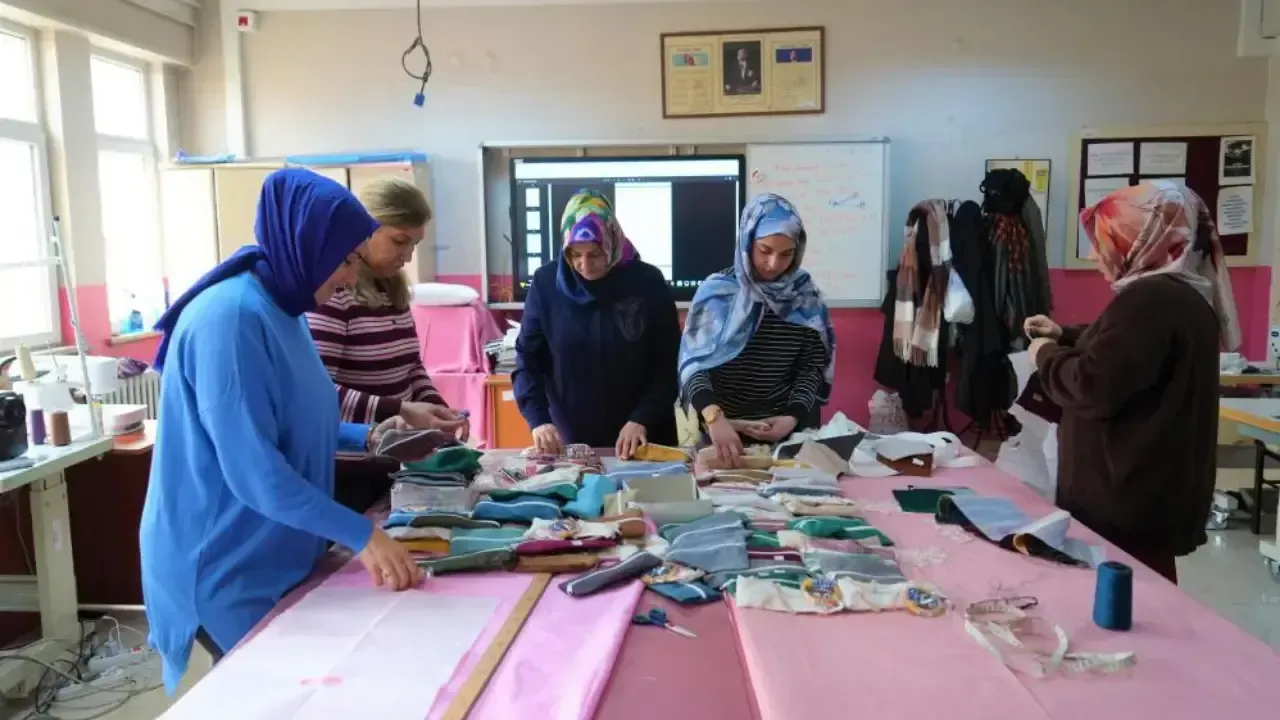 Halk Eğitim Merkezinde verilen kurslarda, kullanılan kumaşların artık parçaları çöpe gitmek yerine kalemlik, minder, yastık ve seccade gibi ürünlerde değerlendiriliyor. Öğretmen Necla Özdemir,