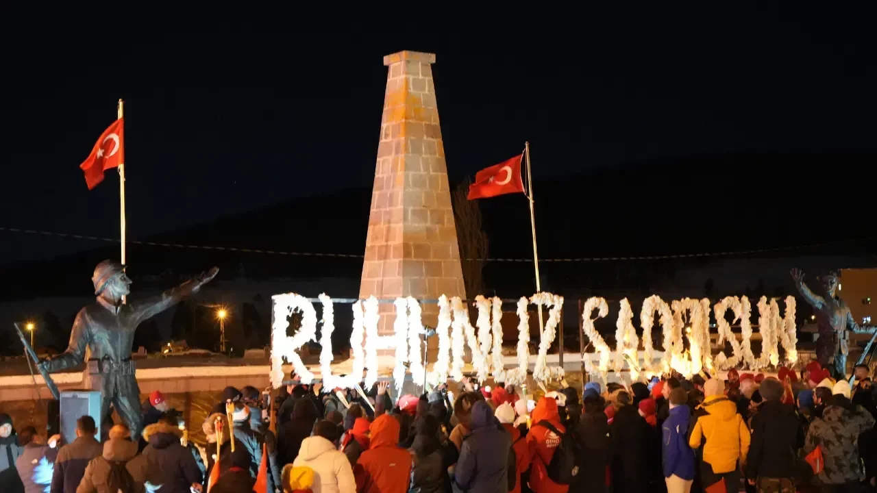 Kars'ta 111 yıl önce Sarıkamış Harekatı'nda şehit olan askerler için binlerce kişi soğuk havada meşale yakarak şehitlik anıtına yürüdü.