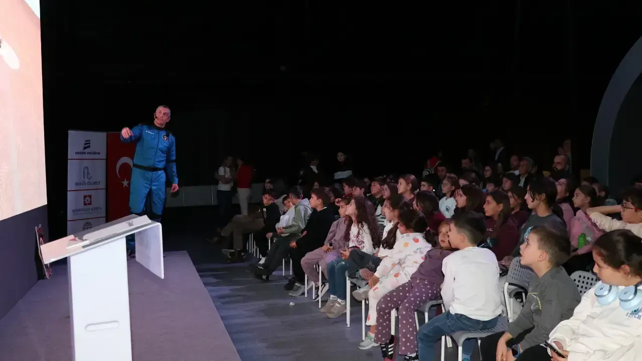 Türkiye’nin üçüncü astronotu Gökhan Erdem, Bursa’da öğrencilerle buluştu. GUHEM’de düzenlenen programda Erdem, uzay yolculuğu, bilim ve teknoloji alanındaki deneyimlerini paylaşarak öğrencilerin sorularını yanıtladı ve hatıra fotoğrafları çektirdi.