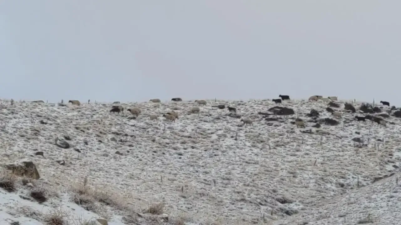 Van'ın yüksek kesimlerinde etkili olan kar yağışına rağmen küçükbaş hayvanların dağlık alanlarda otlatılması sürüyor. Sabahın erken saatlerinde sürülerini yaylaya çıkaran çobanlar, karla kaplanan meralarda hayvanların hâlâ yiyecek bulabildiğini ifade etti.