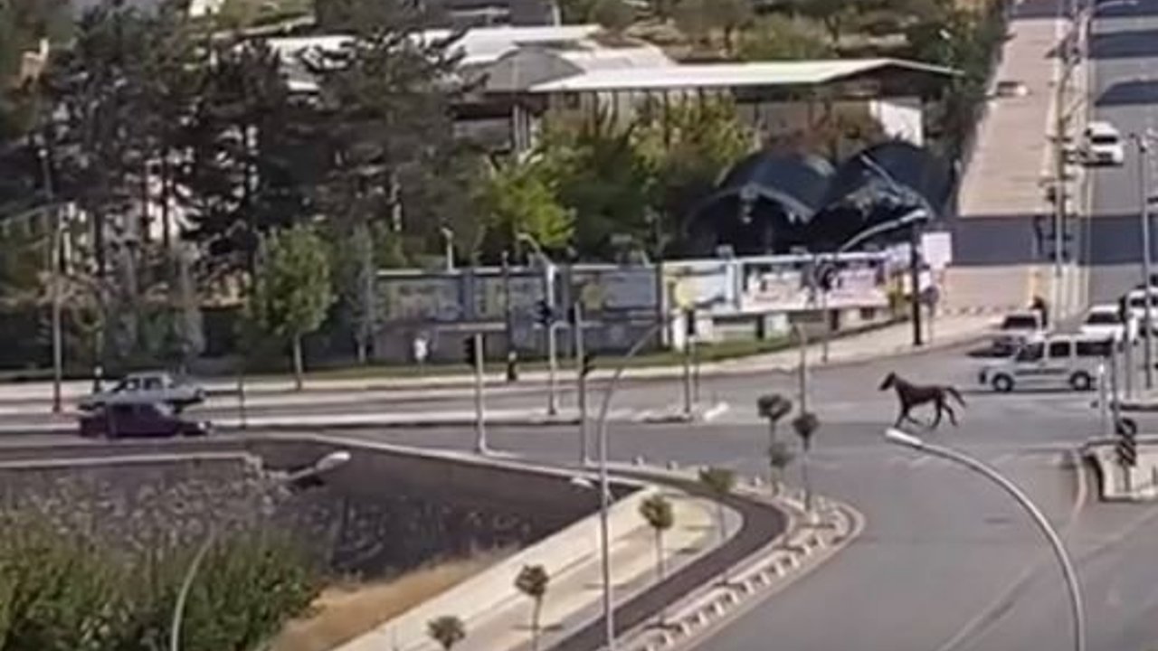 Malatya’da başıboş at, ana yola çıkıp uzun süre trafikte koşturdu. Atı gören sürücüler gözlerine inanamadı.
