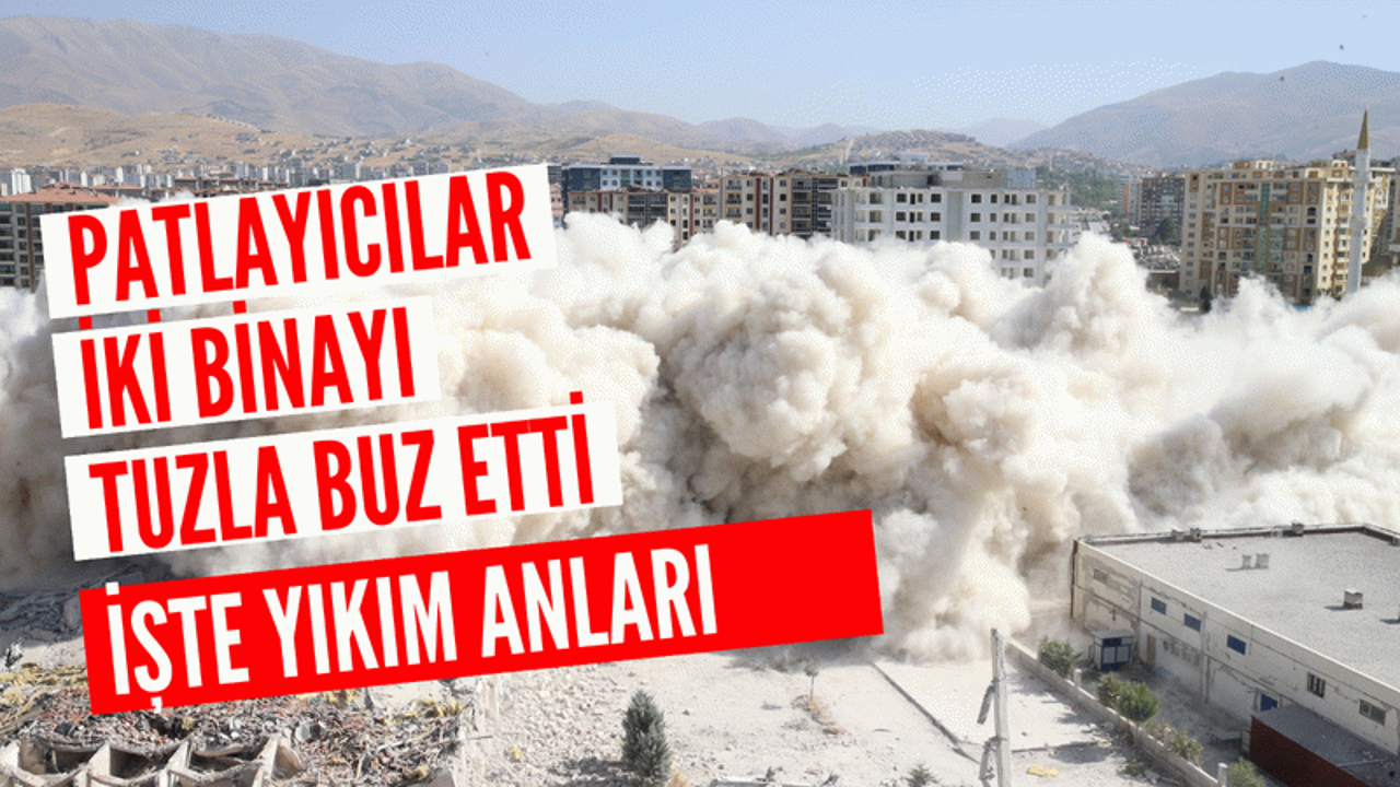 Yeşilyurt ilçesine bağlı Bostanbaşı Mahallesi'nde, depremlerde ağır hasar alan 12 katlı 2 binanın yıkımında patlayıcı kullanıldı.