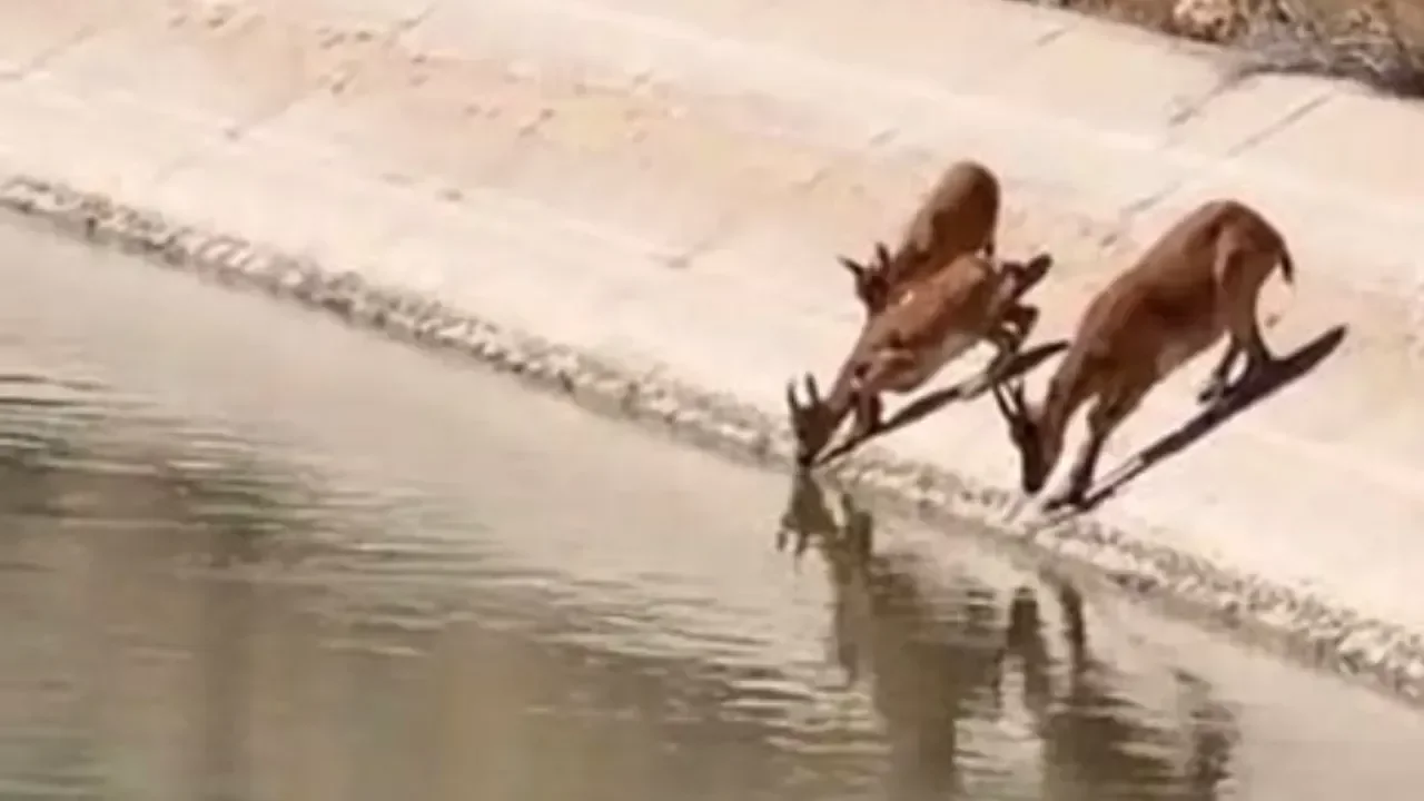 Yaban keçileri su içerken kameralara yakalandı