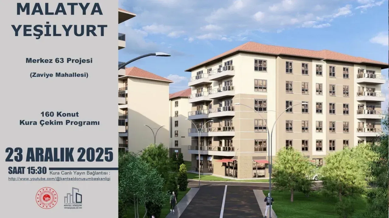 Yeşilyurt’ta da Merkez 63 Projesi kapsamında Zaviye Mahallesi’nde inşa edilen toplam 160 konutun hak sahipleri belirlenecek.