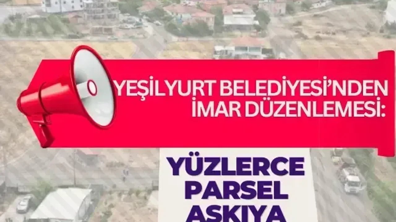 Yeşilyurt ilçemiz Dilek/Aydoğan Mahallesi 154 ada 2, 3, 4, 5, 6, 12, 155 ada 1, 2, 3, 4, 5, 6, 7, 8, 9, 10, 156 ada 1, 2, 3, 4, 5, 6, 7, 8, 9, 10, 16, 18, 157 ada 1, 2, 3, 158 ada 1, 2, 3, 4, 5, 6, 160 ada 1, 161 ada 6, 7, 8, 9, 162 ada 1, 2, 3, 4, 5, 6, 7, 8, 9, 10, 11, 12, 13, 14, 15, 16, 17, 18, 19, 20, 21, 22, 23, 24, 25, 26, 163 ada 1, 2, 3, 4, 5, 165 ada 1, 166 ada 1, 3, 5, 6, 7, 10, 11, 12, 13, 14, 15, 16, 17, 18, 19, 20, 21, 22, 23, 24, 25, 26, 27, 192 ada 1, 193 ada 1, 197 ada 3, Dilek/İstasyon Mahallesi 230 ada 37, 38, 233 ada 40, 41, 42, 43, 256 ada 10, 11, 12, 13, 14, 369 ada 5, 6, Samanköy Mahallesi 245 ada 6 bulunduğu alanda 11/06/2024 tarih 450 sayılı encümen kararı ile 3194 sayılı İmar Kanununun 18. maddesi doğrultusunda imar uygulaması yapılmasına ve 29/01/2026 tarih ve 213 sayılı encümen kararı ile de yapılan imar uygulamasının askıya çıkarılmasına karar verilmiştir.